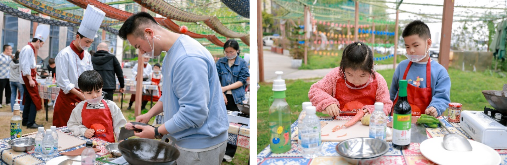 不仅如此,在烹饪过程中产生的“厨余垃圾”,也能通过一些环保小巧思变废为宝。“像我们削下来的土豆皮、胡萝卜皮,加上废弃的白糖,适量的水,摇均匀后静待成为环保酵素。”在协助孩子们烹饪的李锦记希望厨师沙贵发解释,环保酵素日后也可以成为清洁液、植物的营养液,形成循环可持续。