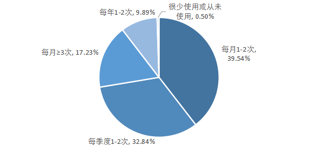 最近一年使用在线旅游消费平台的频率情况