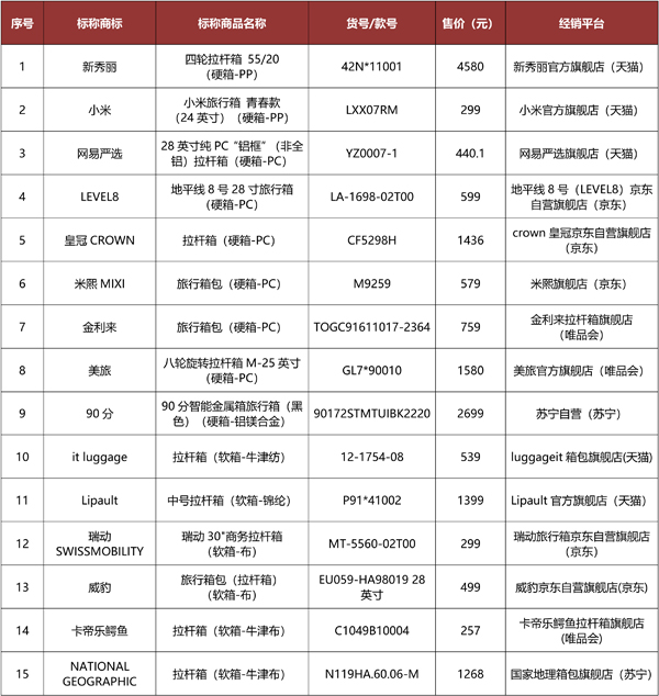 开学季来临,网购平台的箱包产品进入销售旺季。为了解箱包商品的质量状况,引导指导消费,北京市消费者协会对网购旅行箱及背提包包产品开展了比较试验。