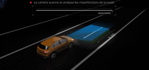 话说回头,DS7的悬挂就是真正意义上的主动感应式悬挂,其搭载了特定的摄像头模组,该模组由1 台摄像头、4台微调感应器和3台加速仪组成。其中,摄像头用于分析和扫描车前方5到20米范围的实时路况,4 台微调感应器和 3 台加速仪则提供车辆定位和瞬时动态。