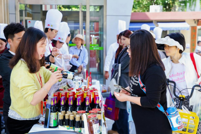 活动当天,户外绿色市集成为焦点之一。绿色食品区展示了李锦记薄盐系列酱料产品,工作人员耐心地为居民讲解每一款产品的使用方法与搭配建议,“中秋家宴用对酱料,既能吃得健康,还能为环保出份力。”工作人员一边向居民演示酱料的搭配技巧,一边讲解“绿色饮食”在节日聚餐中的实践方法,让环保理念融入团圆场景。