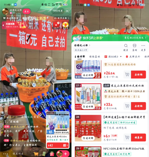 案例四:体验人员于2026年3月6日通过快手“持之以恒”直播间发现,该直播间在直播过程中,直播间内悬挂醒目横幅“一箱5元”,但点击小黄车链接后发现,所有商品链接的标价均高于5元,其中最低价格为6.99元,一般都是几十元一箱或一件。该行为涉嫌利用低价噱头吸引消费者点击,涉嫌欺骗和误导消费者。