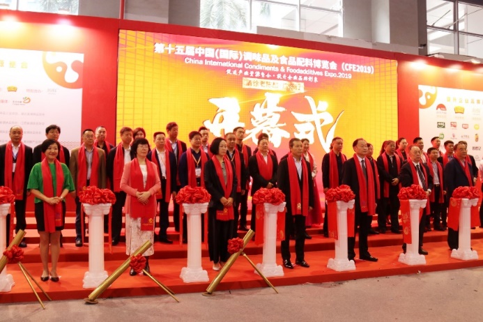 陈姝(前排左一)与中国调味品协会领导及嘉宾共同为开幕式剪彩