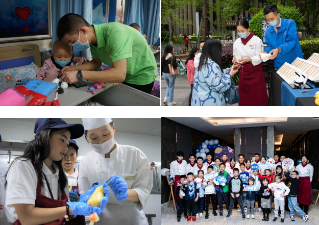 10年来,李锦记不仅输出了大量青年厨师人才进入希尔顿集团发扬中华优秀饮食文化,还多次携手希尔顿开展可持续公益活动,用多样化的表达方式将光带给更多需要帮助的群体:2019年11月,李锦记与成都领地希尔顿嘉悦里酒店一同走进四川省人民医院,关爱弱势儿童给予陪伴;2021年7月,李锦记、新华爱心教育基金会、成都希尔顿酒店三方联动,组织凉山州的同学来到成都进行“无边无际城市夏令营”,感知城市中不同的职业,无限的可能性;2022年4月,四川海惠助贫服务中心联合李锦记在成都希尔顿酒店发起“予人节”主题爱心早餐活动,所得收入用于支持凉山州昭觉县的农户学习农业技术;同年11月,李锦记、新华爱心教育基金会又在成都希尔顿酒店举行航天梦主题公益活动,通过凉山州孩子的画作展表达航天梦、中国梦。
