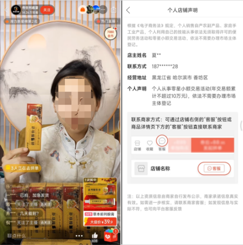 案例三:体验人员于2026年2月26日通过拼多多“传世列疏堂”直播间购买了一款前列腺软膏,价格39.9元。主播在直播中介绍,该产品针对小便不顺畅、尿憋不住、尿不出来、滴滴答答、尿线变细、尿分叉、刺痛感、频繁上厕所起夜等多种前列腺问题,宣称是周氏几代传承的古法古方,纯中草提取物,具有高浓缩、高提纯、小分子的特点,为独家产品,涂抹于肚脐往下两到三指的关元穴,早晚各一次即可。销售店铺“传世列疏堂”为个人店铺,经营地址位于黑龙江省哈尔滨市香坊区,声明“从事个人小额交易(年交易额累计不超过10万元),依法无需办理市场主体登记”。收到货后,产品显示出品企业为“古初堂生物科技(龙岩)有限公司”,地址为福建省长汀县策武镇汀州大道南路48号2#车间。主播在直播过程中多次使用“古法古方”“独家产品”“高浓缩小分子”等表述,并使用大量医疗术语描述产品,暗示能缓解甚至治愈前列腺疾病,涉嫌虚假宣传。